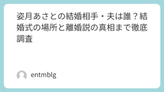 宝塚 姿月あさとの結婚相手・夫は誰?結婚式の場所と離婚説の真相まで徹底調査 元宝塚歌劇団宙組の初代トップスターとして多くのファンを魅了した姿月あさとさん。華やかな舞台を去った後の私生活、特に結婚相手である夫や離婚説について気になる方も多いのではないでしょうか。2000年の寿退団から25年が経った現在、姿月あさとさん... 2025.10.13 宝塚