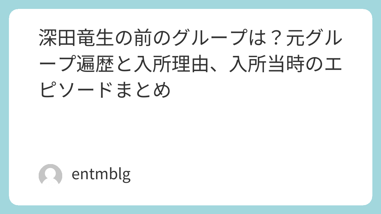 深田竜生の前のグループは?元グループ遍歴と入所理由、入所当時のエピソードまとめ