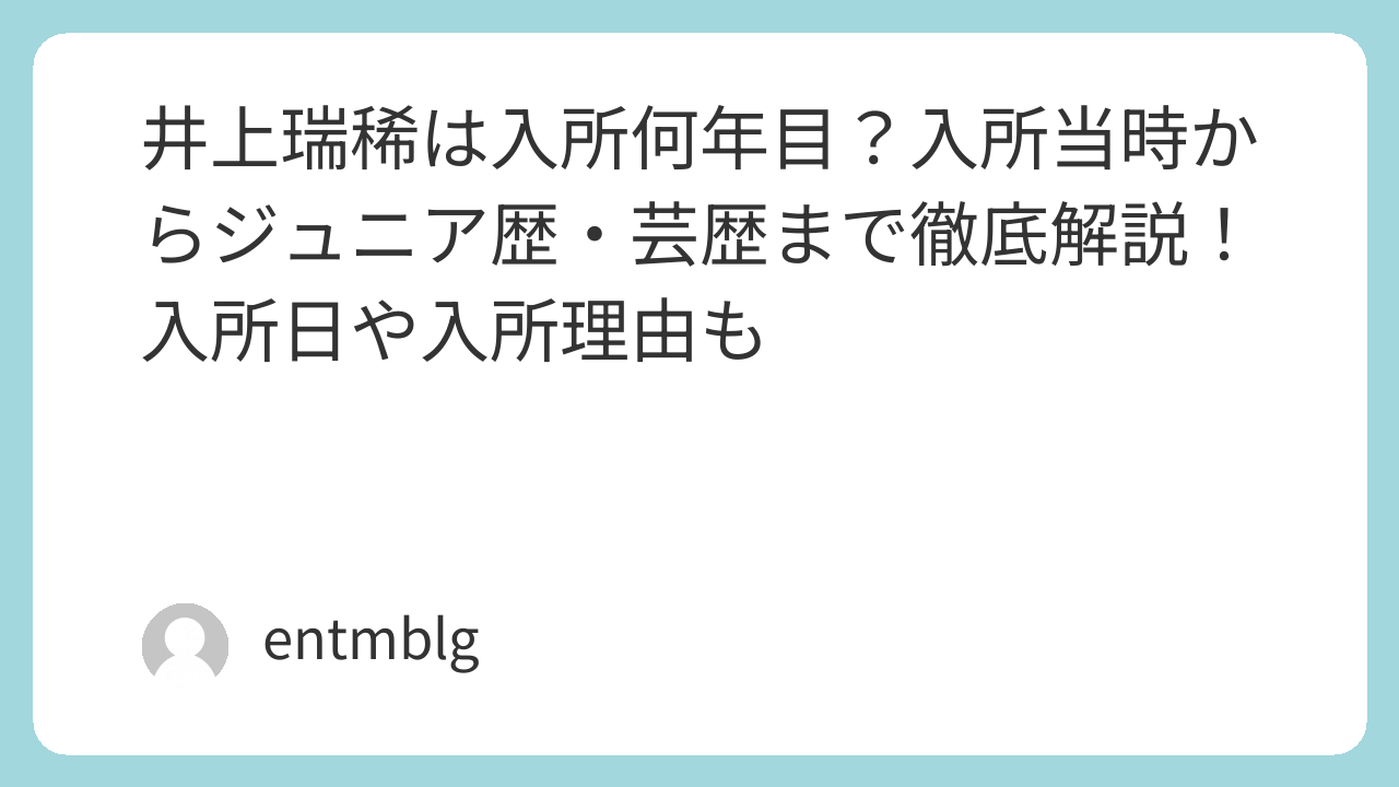 この記事では、井上瑞稀さんの入所当時のエピソードから、長いジュニア歴、豊富な芸歴まで徹底解説します。