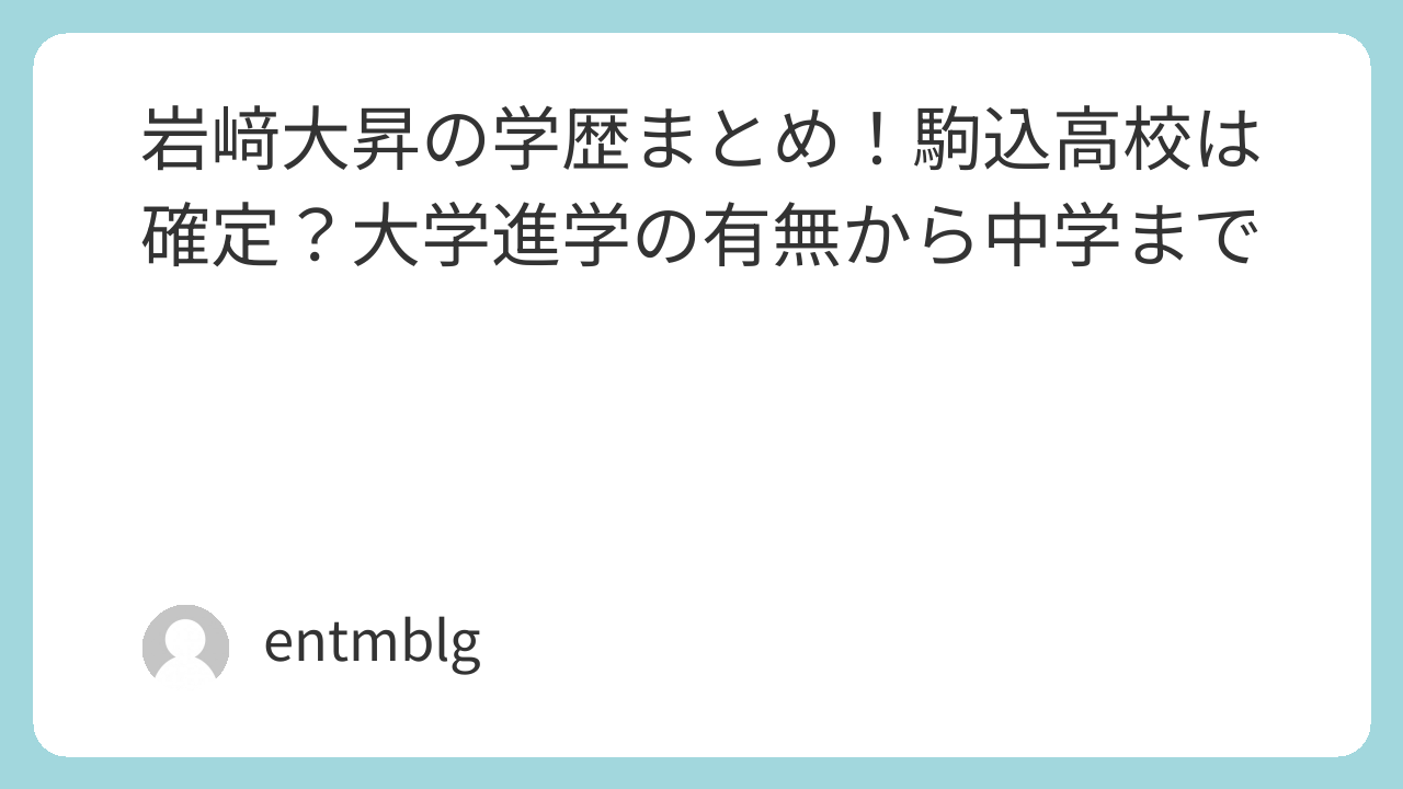 岩﨑大昇さんの正しい出身高校は、東京都文京区にある私立駒込高校なんです。