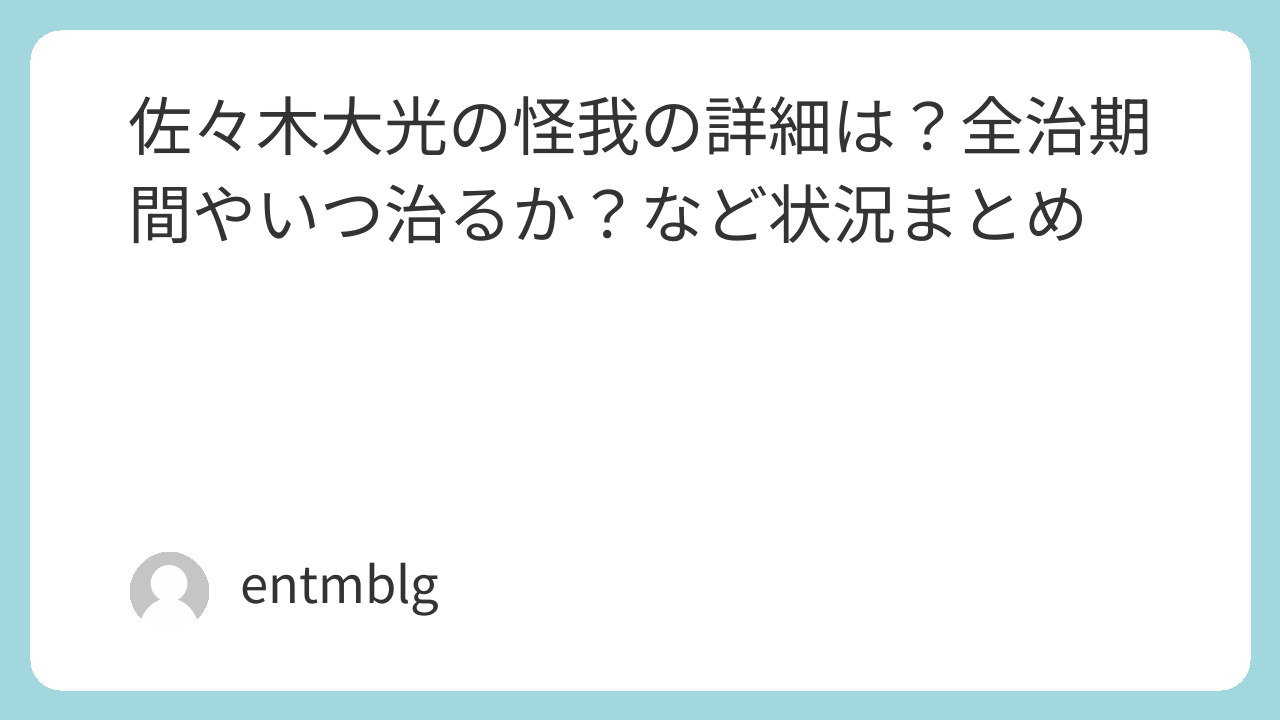 佐々木大光の怪我の全治期間は?公式発表と一般的な回復期間