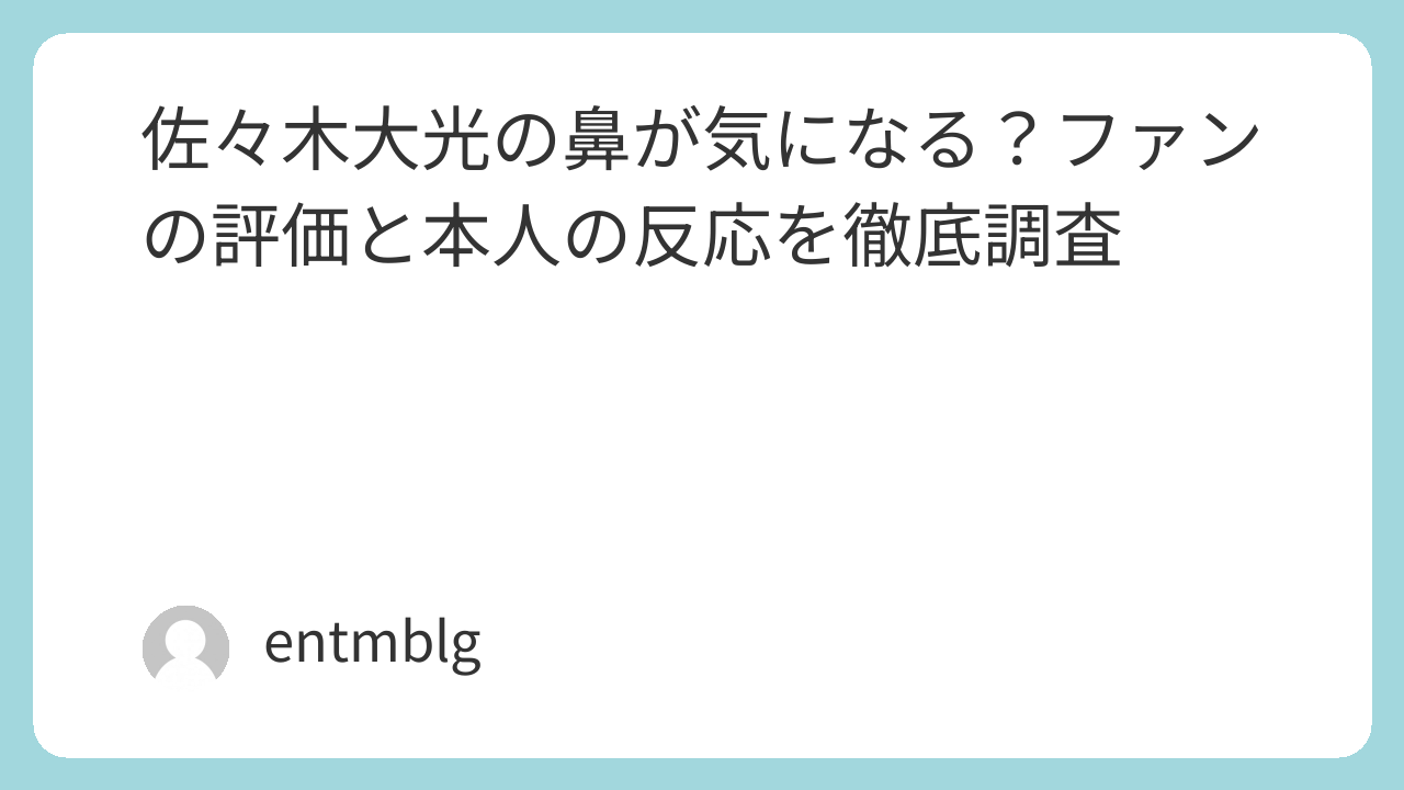 本記事では、佐々木大光さんの鼻に関する専門家の評価、ファンの本音、そして本人の反応まで、客観的な情報を徹底的に調査しました。