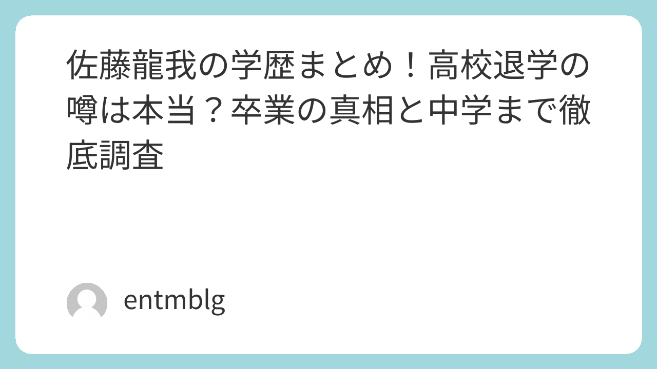 佐藤龍我さんの学歴を整理すると以下の通りです。