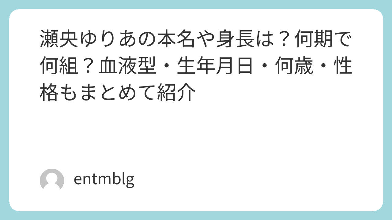 この記事では、瀬央ゆりあさんの身長・本名・何期・何組・歌唱力・血液型・生年月日・成績・性格・誕生日・年齢まで、プロフィールを丸ごと解説します。