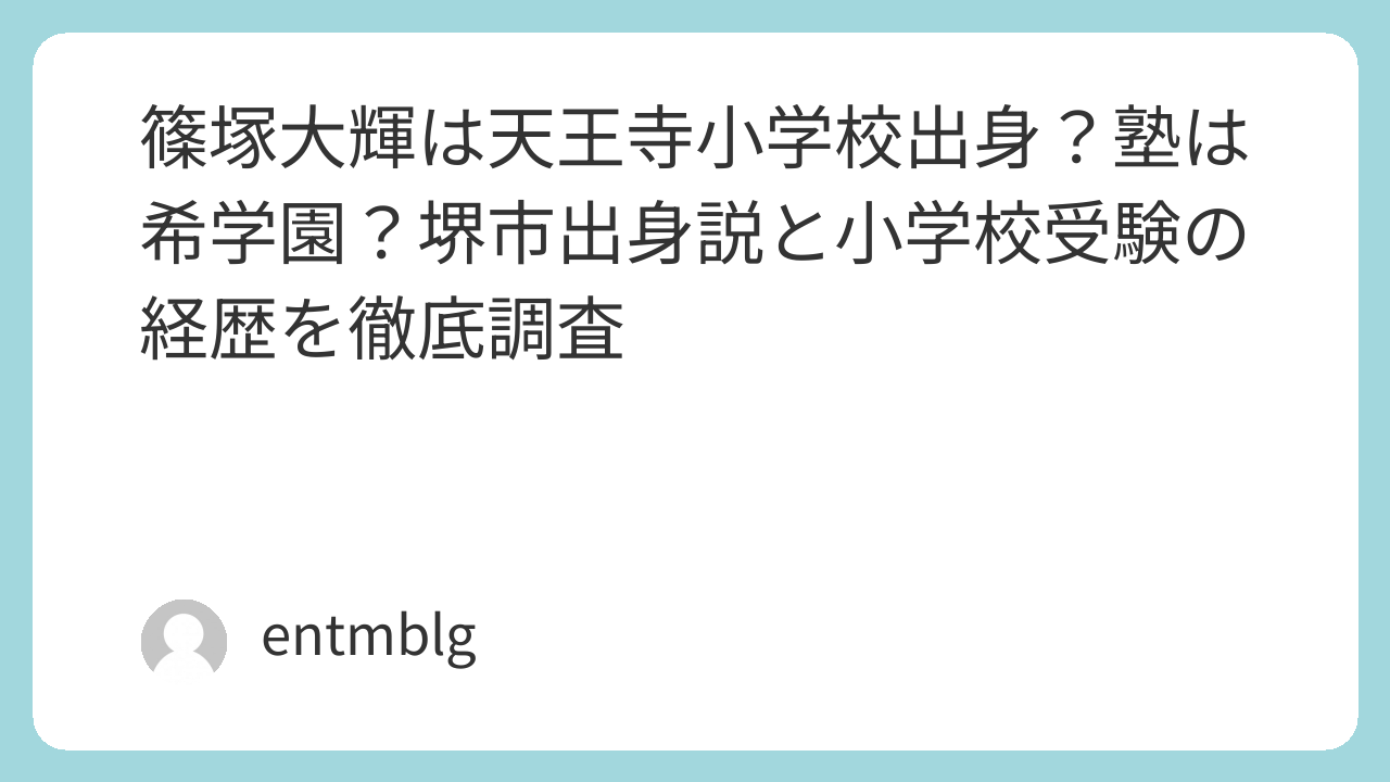 篠塚大輝さんの出身小学校は、大阪教育大学附属天王寺小学校でほぼ確定的です。