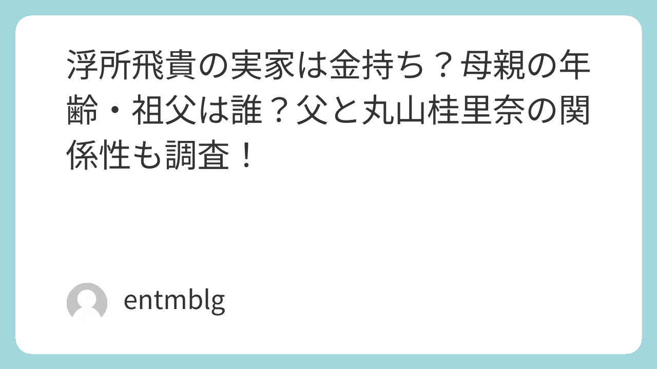 そんな浮所飛貴さんについて、「実家が金持ち」という噂が絶えません。